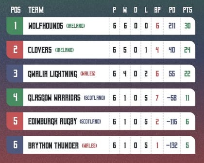 Seriously though, there have been some crazy results in the URC of late, and this week we had a rare occurrence on rugby Superbru, namely someone accurately predicting a draw, which happened to Ciarán Duffy who won the round thanks in part to foreseeing the Ospreys/Dragons stalemate. In the knockout mug competition, last year’s winner Conor may be down the bottom of the overall league but he moved into the semifinals with a convincing win over Mark.