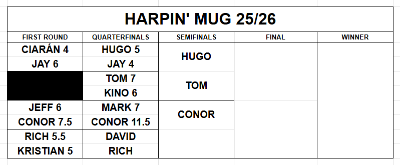 Hey, who’s that “Jeff” guy who has leap frogged four others this week to top the Harpin’ Prediction League???? He must be pretty good at the forecasting eh?