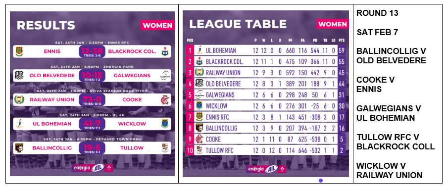 The Women’s AIL gap has been breached!!!!!!!! I have been harping for ages how the top 4 clubs UL Bohs, Railway U, Rock & Belvo always beat the other 6 clubs in the league, often with “cricket scores”, and I singled out Galwegians in particular for what appeared a deceptive 100% start to the season which came crashing down once they met the Fab4. Well, they are the very ones to have broken the spell courtesy of a 15-10 win away to Belvo, and congrats to them. Could I be cynical and suggest it has something to do with players being involved in the Celtic Challenge? I could, but I won’t. It is actually a result this league badly needs IMO and hopefully there will be more like it.