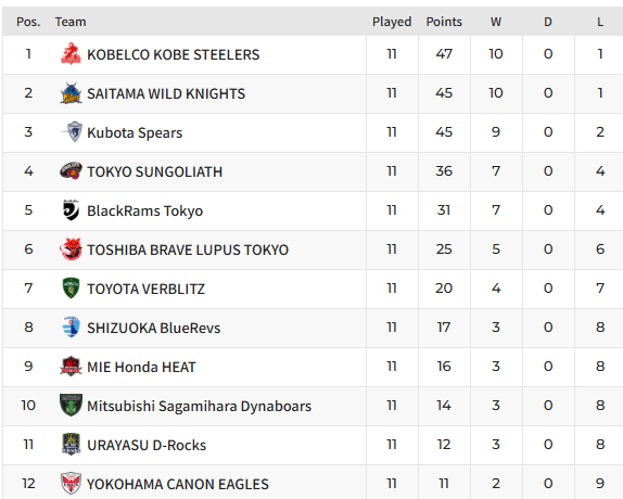 Tokyo Sungoliath 60–21 Toshiba Brave Lupus Tokyo